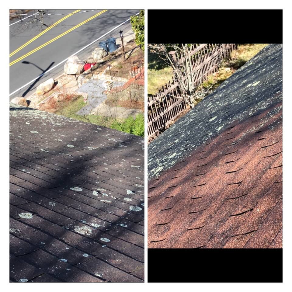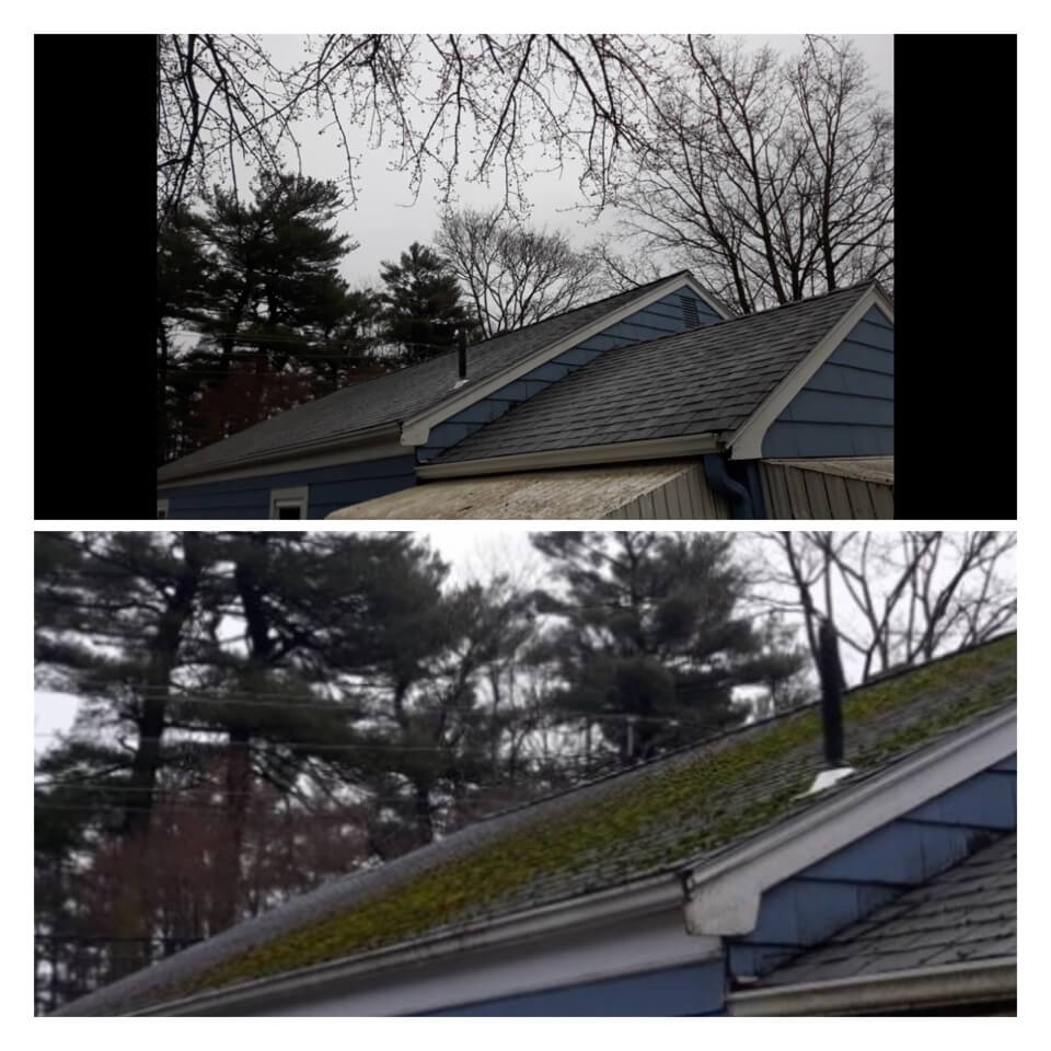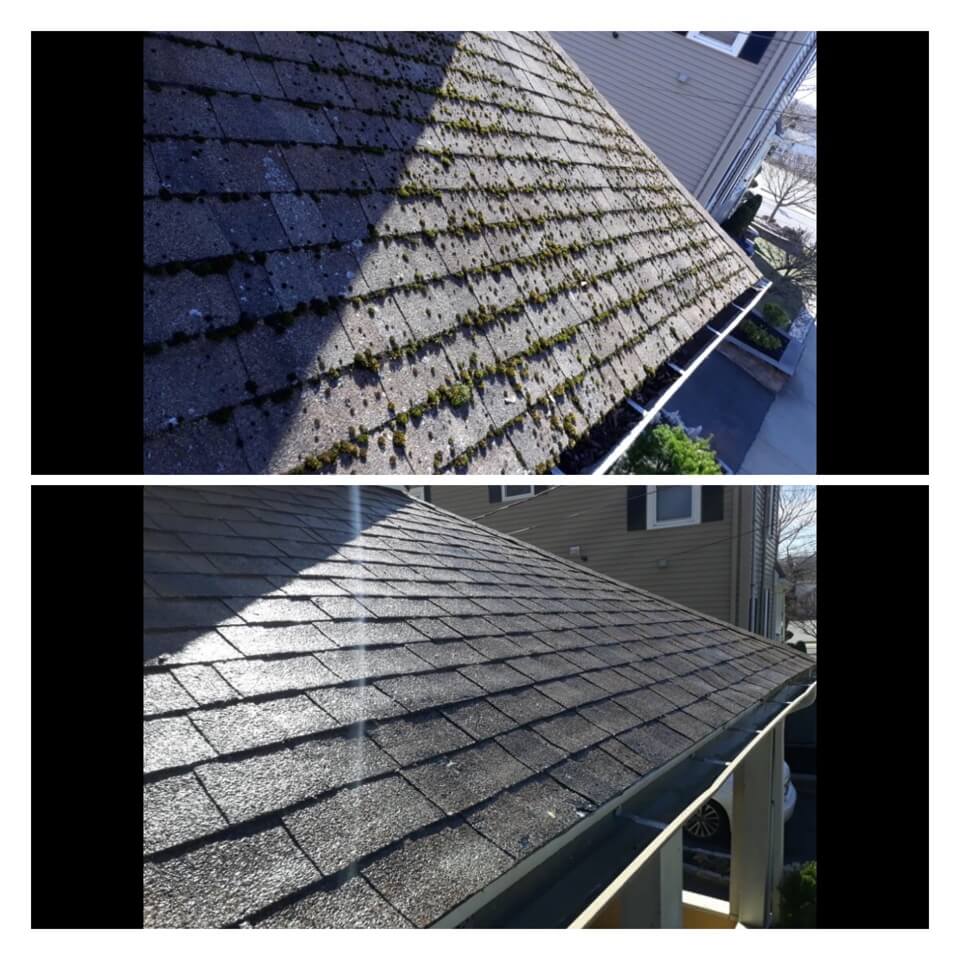 HiCleaners is the most experienced company in Concord, MA that deals with roof washing and roof soft washing. All of our employees are trained to recognize precise solution mixing ratios to provide you with the safest and most effective soft washing service. Roofs are a commonly neglected part of a house due to the fact that most people don’t have ladders to access it, so it is very easy to just leave it alone and forget about problems that may start to arise. Just like many home owners, discoloration and small bits of moss on a roof can be overlooked because of the misconception that it is just aesthetic. However, it isn’t just aesthetic, the moss slowly lifts the granules off the shingles which in turn shorten the life of the shingle. The moss also spreads, just like any bacteria if it is left alone for too long, it can quickly become a problem that spirals out of control. Call HiCleaners for a free quote, we only use the most advanced eco-friendly solutions and equipment to make sure the job is done right, for the safety of the employees, your plants, grass, pets, and children.