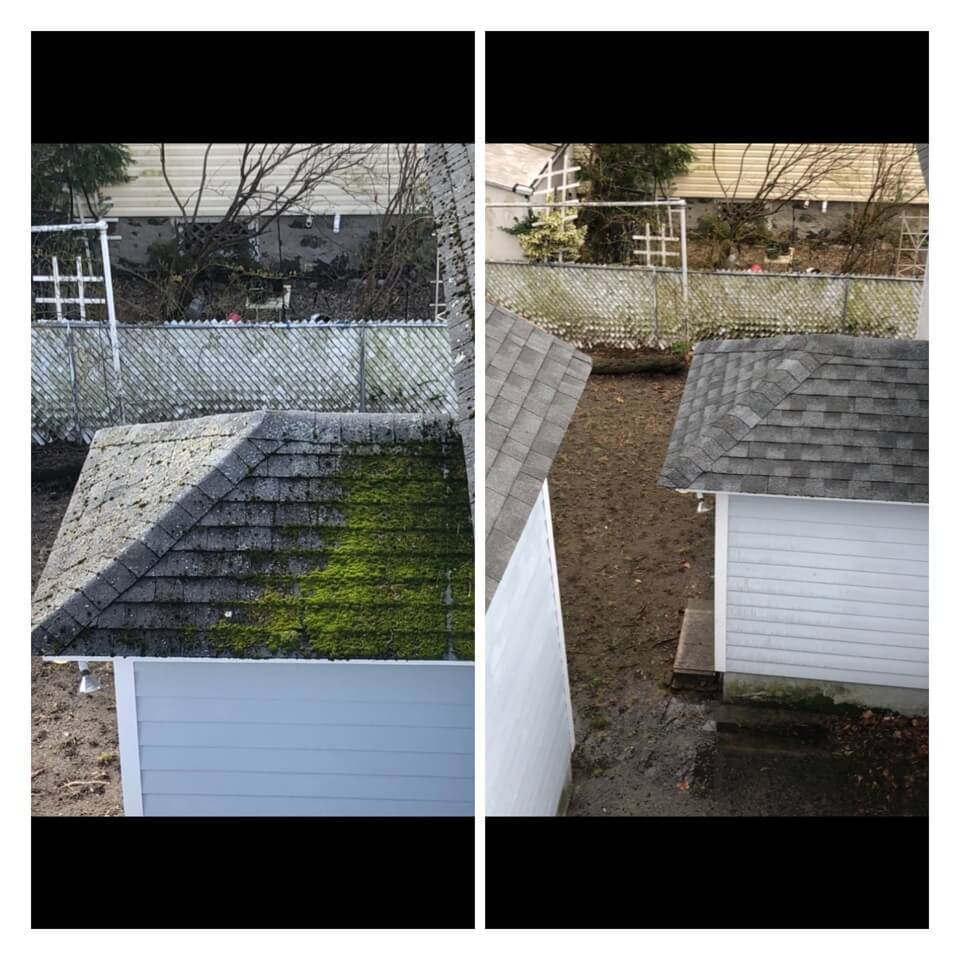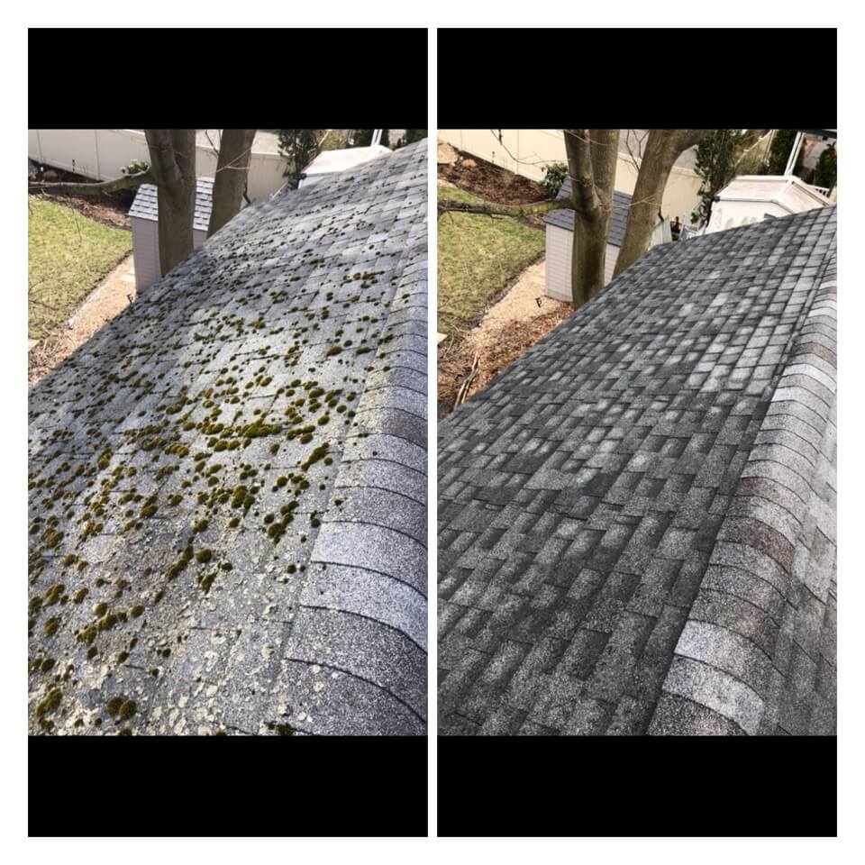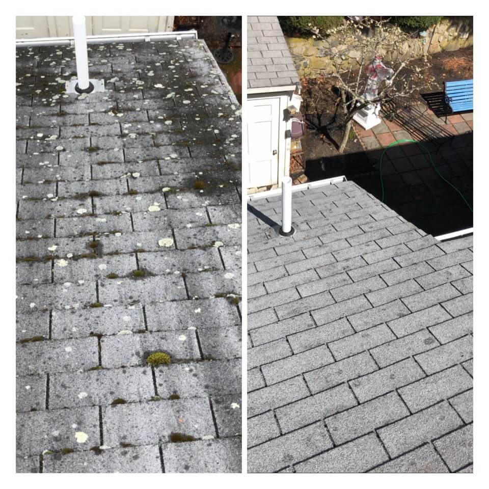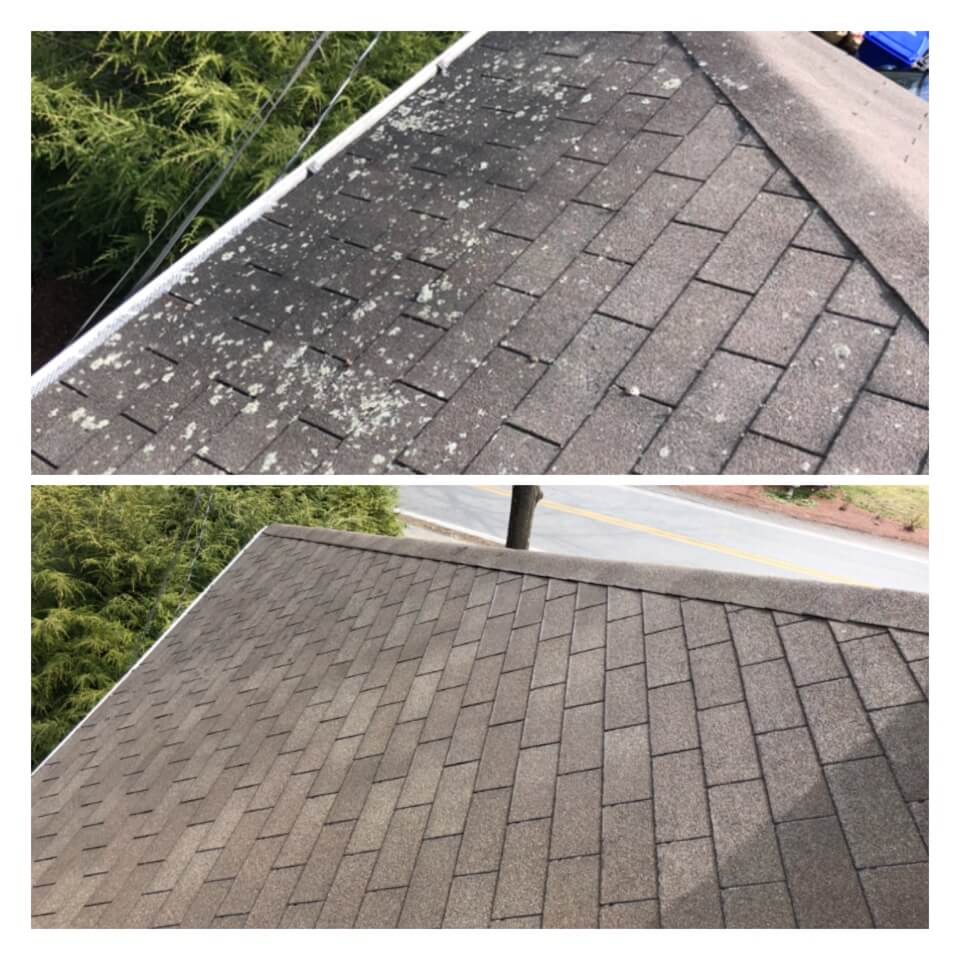 HiCleaners is the most experienced company in Concord, MA that deals with roof washing and roof soft washing. All of our employees are trained to recognize precise solution mixing ratios to provide you with the safest and most effective soft washing service. Roofs are a commonly neglected part of a house due to the fact that most people don’t have ladders to access it, so it is very easy to just leave it alone and forget about problems that may start to arise. Just like many home owners, discoloration and small bits of moss on a roof can be overlooked because of the misconception that it is just aesthetic. However, it isn’t just aesthetic, the moss slowly lifts the granules off the shingles which in turn shorten the life of the shingle. The moss also spreads, just like any bacteria if it is left alone for too long, it can quickly become a problem that spirals out of control. Call HiCleaners for a free quote, we only use the most advanced eco-friendly solutions and equipment to make sure the job is done right, for the safety of the employees, your plants, grass, pets, and children.